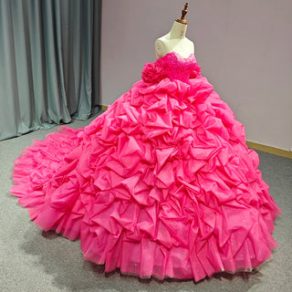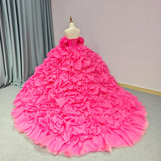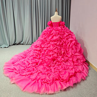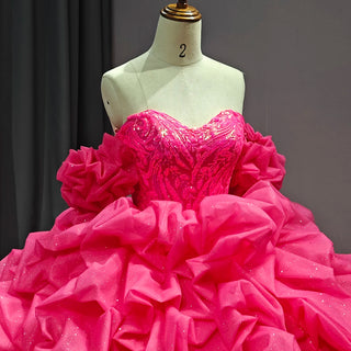 Shiny Fuchsia Off-Shoulder Puffy Evening Party Gown